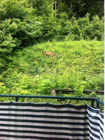 Highlight ist der Blick vom Balkon in den Wald hinauf, wo auch ein kleiner Garten zum Blumenpflücken auf Sie wartet